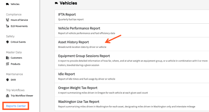 Use this workflow to generate and export an asset history report from Maven Fleet.