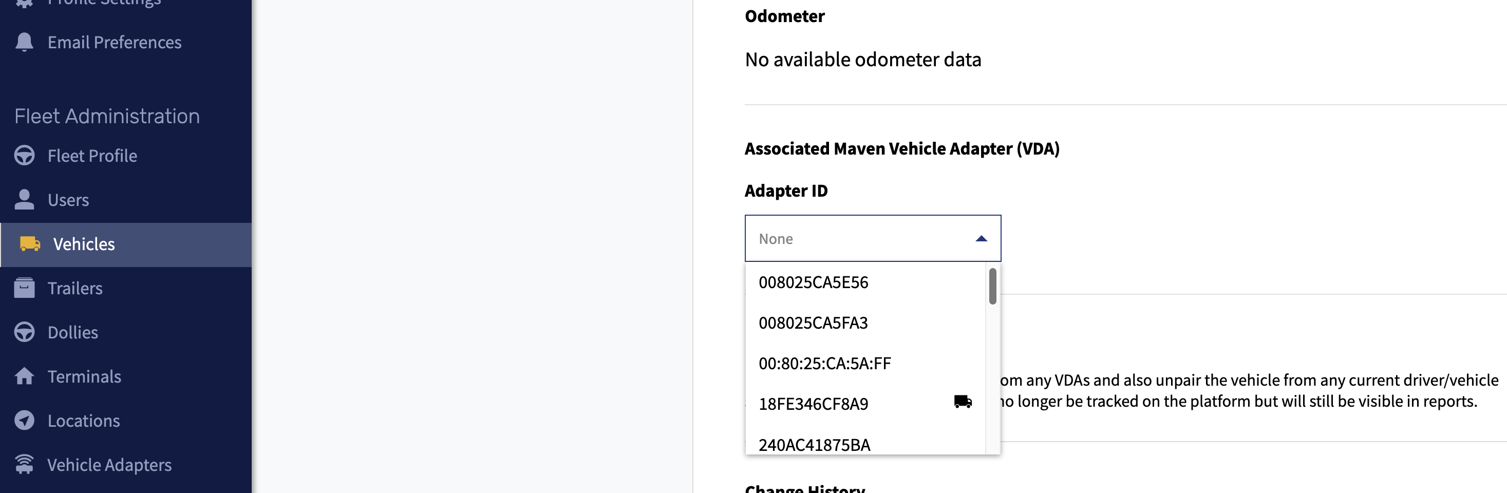Pair a Vehicle Data Adapter (VDA) to the correct vehicle in Fleet Admin. Proper pairing ensures that engine and ELD data attach to the right truck.