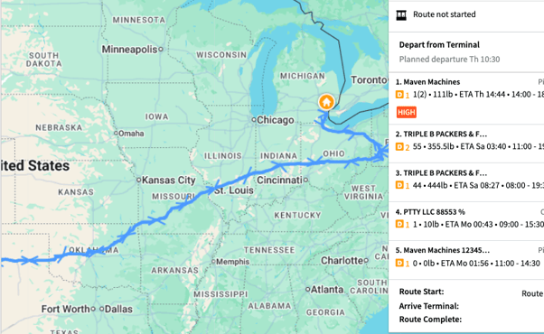 Route polylines are the colored lines you see on the Maven Dispatch map. They show the path a driver is planned to take. Use polylines to quickly understand where a route goesSee polylines on the map