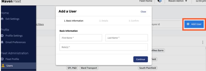 Use Maven Admin to create users, assign roles, and control access across the Maven platform. Correct role setup ensures planners, dispatchers, and drivers see the right tools.