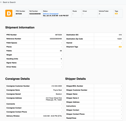 Correct shipment confirmation through PRO/reference, status, and dates